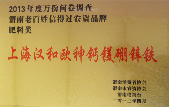 歐神鈣鎂硼鋅鐵、普羅施旺硫酸鉀獲老百姓信得過農(nóng)資品牌2013年4月25日,由渭南電視臺(tái)、渭南市農(nóng)資協(xié)會(huì)、渭南市消費(fèi)者協(xié)會(huì)共同主辦,渭南人民廣播電臺(tái)、華山網(wǎng)全程支持的“第二屆《春風(fēng)里》渭南老百姓信得過的農(nóng)資品牌評選授詳情>>