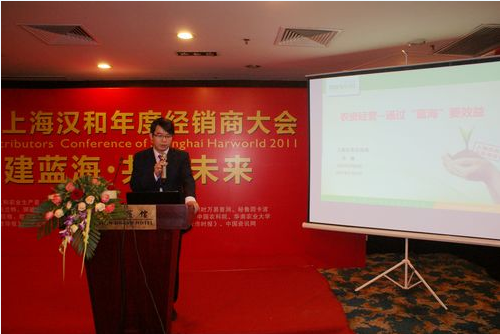 廣西綠田、海南三亞雙耀農資、湛江綠邦等多個公司的老總在會議上分享了與漢和生物合作共同實施“藍海”戰略取得的成果和經驗。