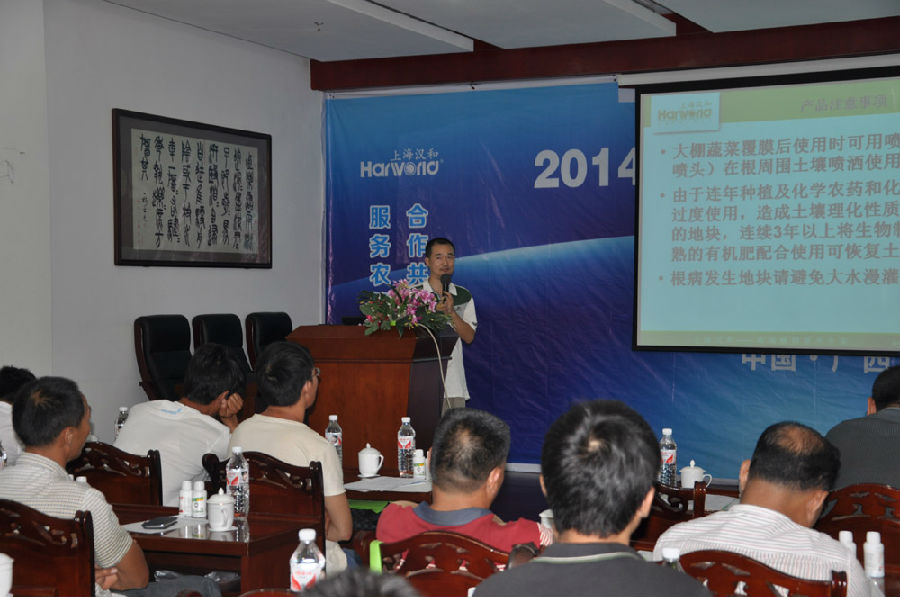 漢和生物工程研發(fā)中心項(xiàng)目經(jīng)理唐老師對微生物菌劑的功能、漢和相關(guān)產(chǎn)品特性及微生物菌劑在田間使用的技術(shù)進(jìn)行了詳細(xì)說明。