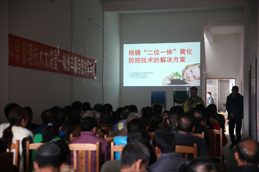 近日,漢和生物特聘農化專家呂運老師前往柳州市柳城縣太平鎮開展主題為《柑橘“二位一體”黃化防控技術解決方案》的農民培訓會。