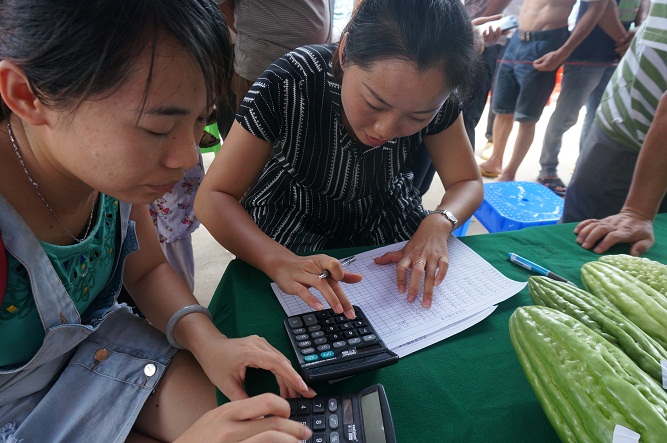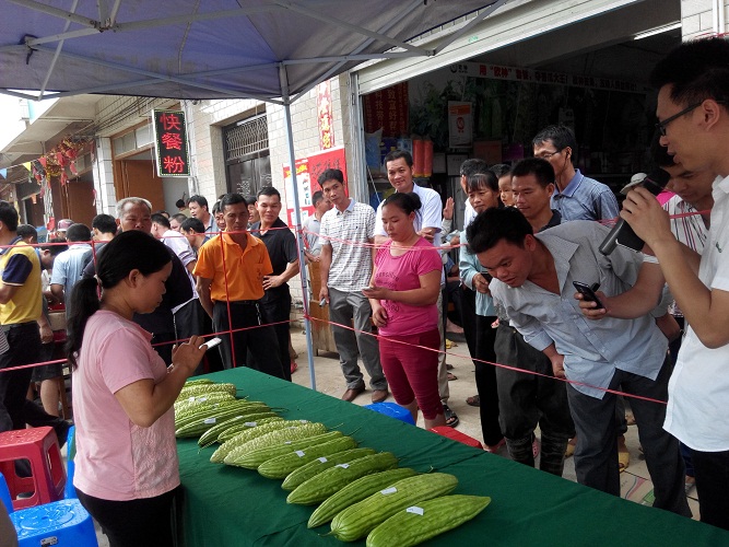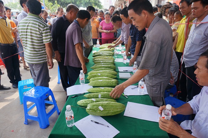 早晨五點(diǎn)多,農(nóng)戶陸陸續(xù)續(xù)趕來,拿來自家的苦瓜現(xiàn)場(chǎng)報(bào)名參賽。