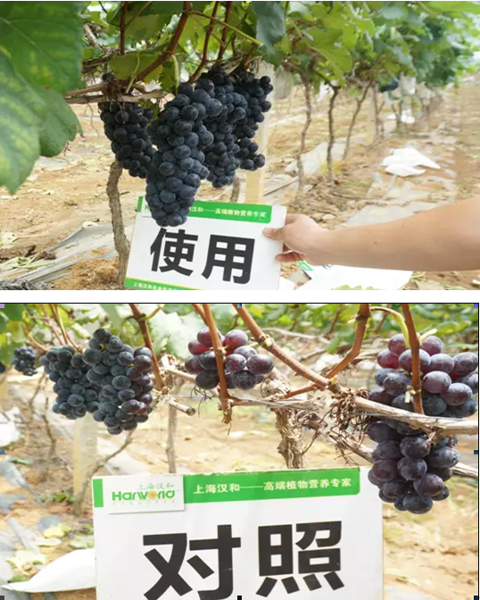 而據劉子敏反應,近幾年,在葡萄著色增甜上,他一直苦于尋找效果顯著的肥料品種。上海漢和農場部的農化專家們,通過對施肥情況的詳實了解以及實地勘察,與他達成協議使用上海漢和普羅施旺系列的普滋紅、普滋靈進行促進增甜著色試驗,對照區域按農場主正常施肥管理。