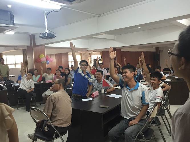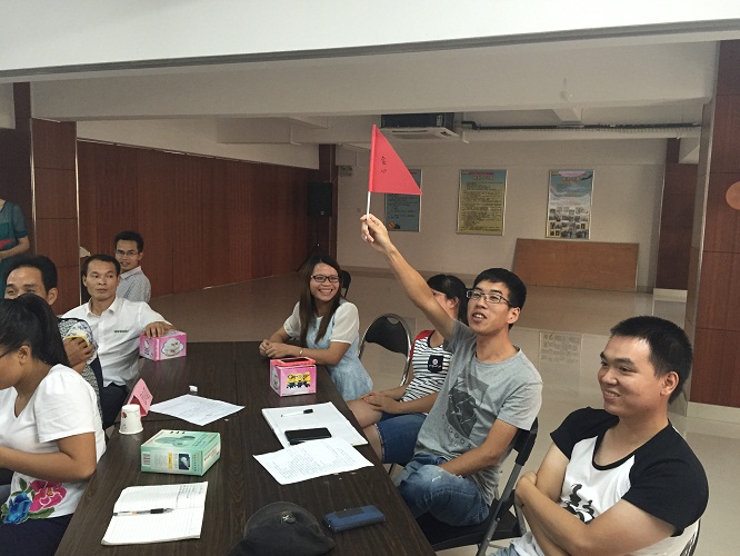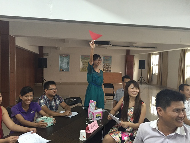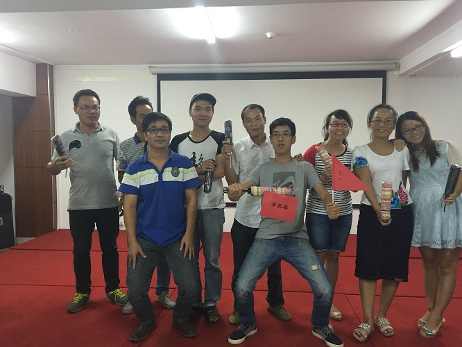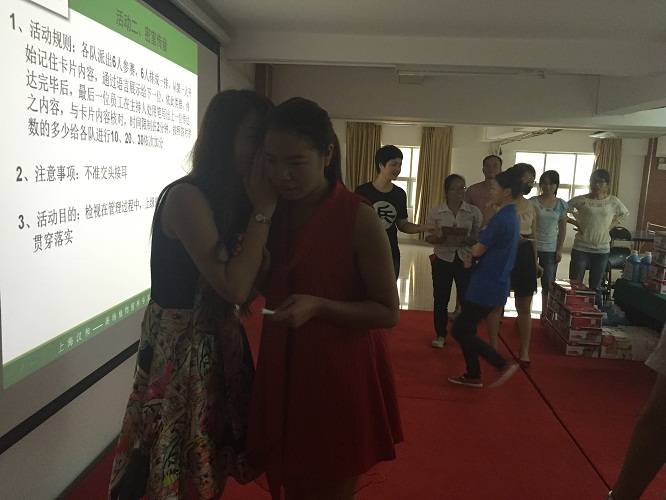 培訓結束后,開展了豐富多彩的團隊活動,如檢視產品知識了解程度的"質量知識搶答",檢視工作默契程度的“你比我猜”,檢視在管理過程中、上級的工作安排是否得以貫徹落實的“密室傳音”,檢視在工作過程中的反應能力及持續改善能力的“圍圈報數”等趣味活動,員工踴躍搶答與參與,現場氣氛熱烈濃郁。