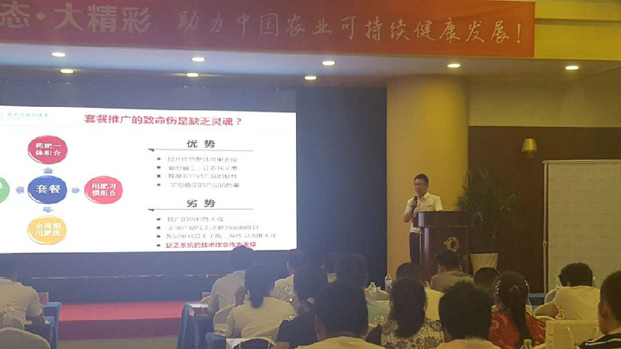 韋敏將理論與大量的田間案例相結合,系統闡述了漢和生物始終圍繞“二位一體”理念對產品體系開展深層技術研發的過程與成果;由“二位一體”理念引申而來的“打造技術理念的品牌!讓套餐推廣擁有靈魂!做技術品牌的傳播者!”的倡導,讓在場經銷商感同身受、深受啟發。