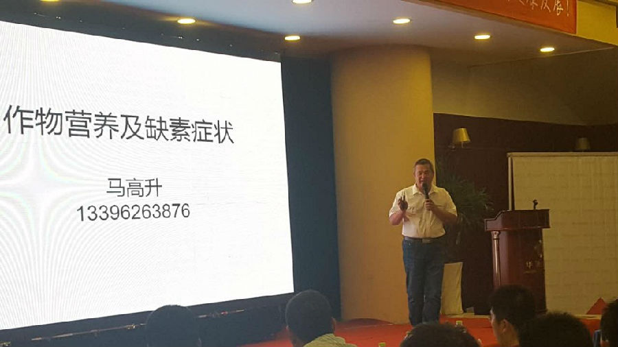 漢和生物華北大區營銷總監馬高升作《作物營養及缺素癥狀》授課講解。作為一名技術營銷實戰派,馬高升的此次授課,同往常一樣通俗精彩,讓聽眾受益匪淺,也收獲滿場掌聲。