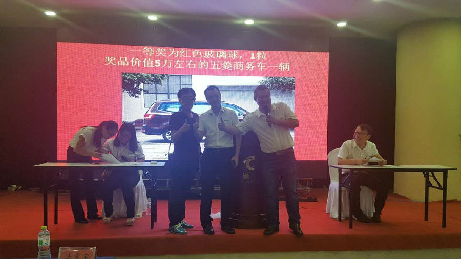 會議臨近尾聲,在場經銷商客戶簽單踴躍;隨后的現場抽獎互動環節,隨著一等獎一輛價值五萬左右的五菱商務車被抽出,會議在新一輪的高潮與狂歡中,圓滿落幕。