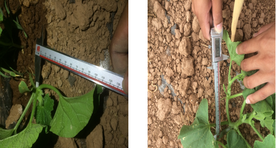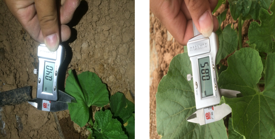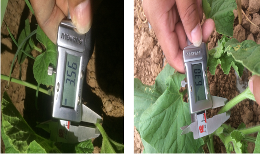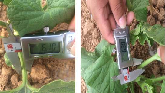 使用組的甜瓜苗,莖稈粗度為6.30mm;對照組的甜瓜苗,莖稈粗度為6.10mm。說明微根露在促進(jìn)作物提苗,健壯植株長勢上作用突出。